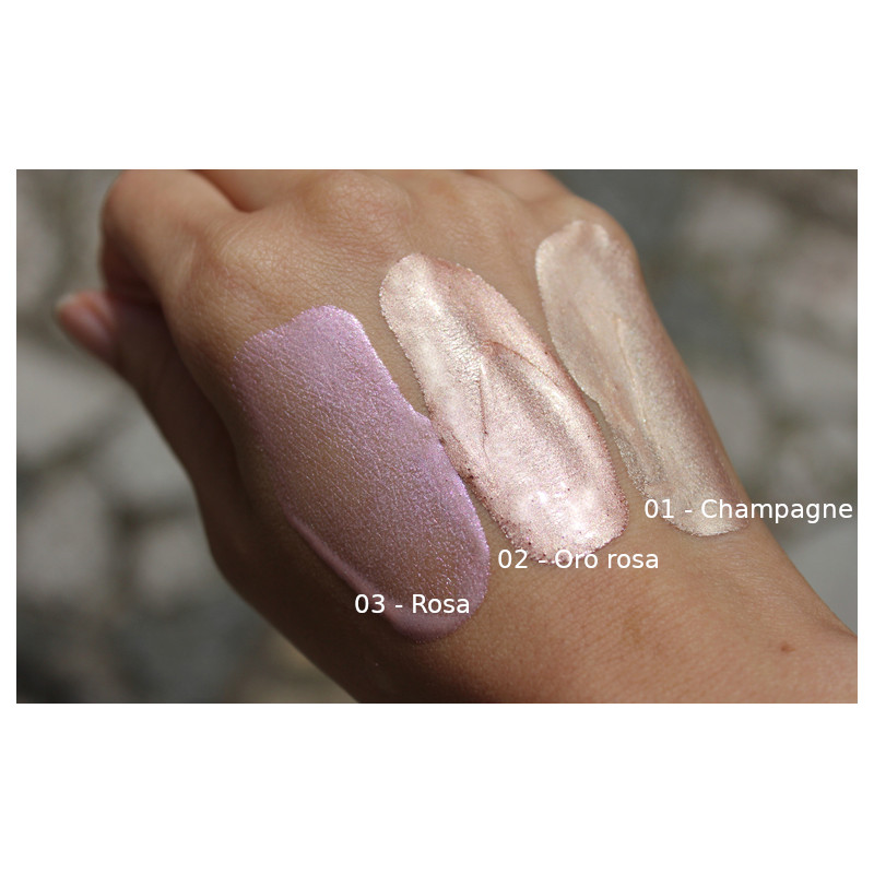 The freshness of cornflower water combined with ultra-shiny pearls and vegetable glycerin creates a highlighter that brings radiance to your skin for a long time.
